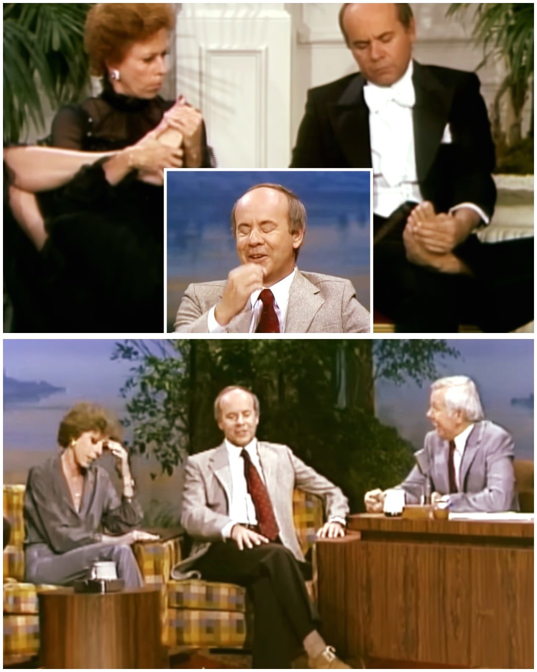 At the center of this viral resurrection are two of America’s most beloved comedy icons — Carol Burnett and Tim Conway — seated beside the unflappable king of late night, Johnny Carson. What unfolds is not a rehearsed bit or a polished punchline, but something far rarer: a perfect comedic accident that still lands with surgical precision.