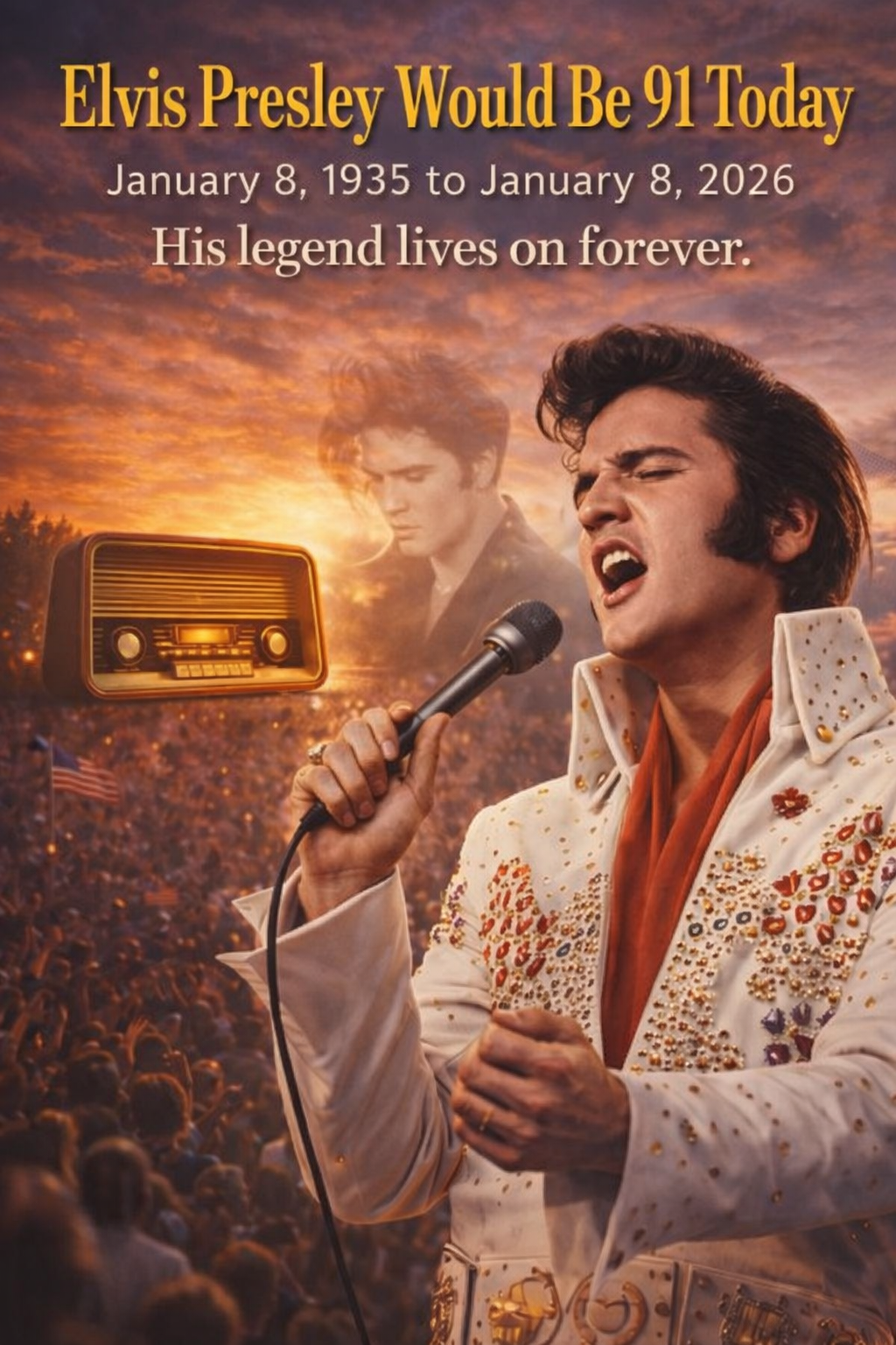 “Remembering the King of Rock and Roll on his 91st birthday. Elvis Presley: January 8, 1935 – January 8, 2026. His legend lives on forever.”
