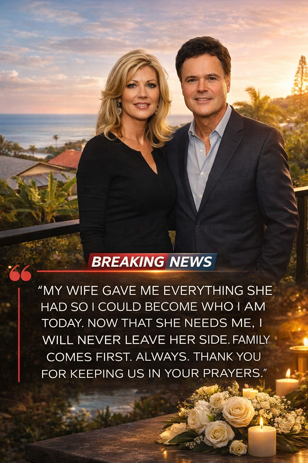 These words, simple yet profoundly moving, were shared by Donny Osmond in a quiet moment that contrasted sharply with the flashing cameras and roaring applause of his usual public life. What unfolded was not a performance, but a deeply personal reflection — a glimpse into the private life of a man the world has long admired for his talent, charm, and resilience.