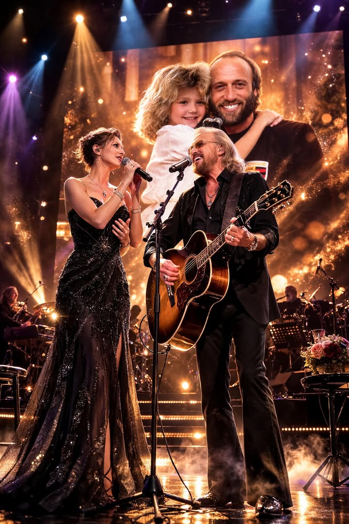 Barry Gibb, now the last surviving member of the Bee Gees’ core lineup, stood singing words written by his brother decades earlier. Beside him stood Samantha Gibb—representing the next chapter of the family’s musical story.