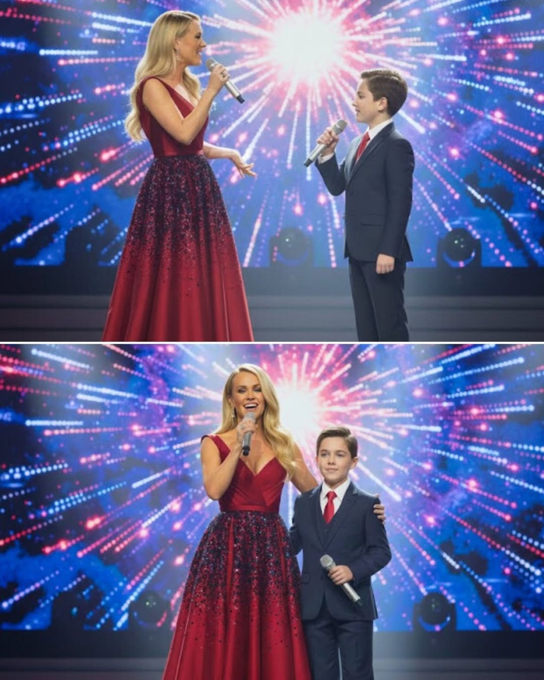 Carrie Underwood, one of modern country music’s most technically gifted singers, approached the hymn with restraint and warmth. She allowed space in the arrangement so Jacob’s young voice could shine, guiding him gently through the melody rather than dominating it.