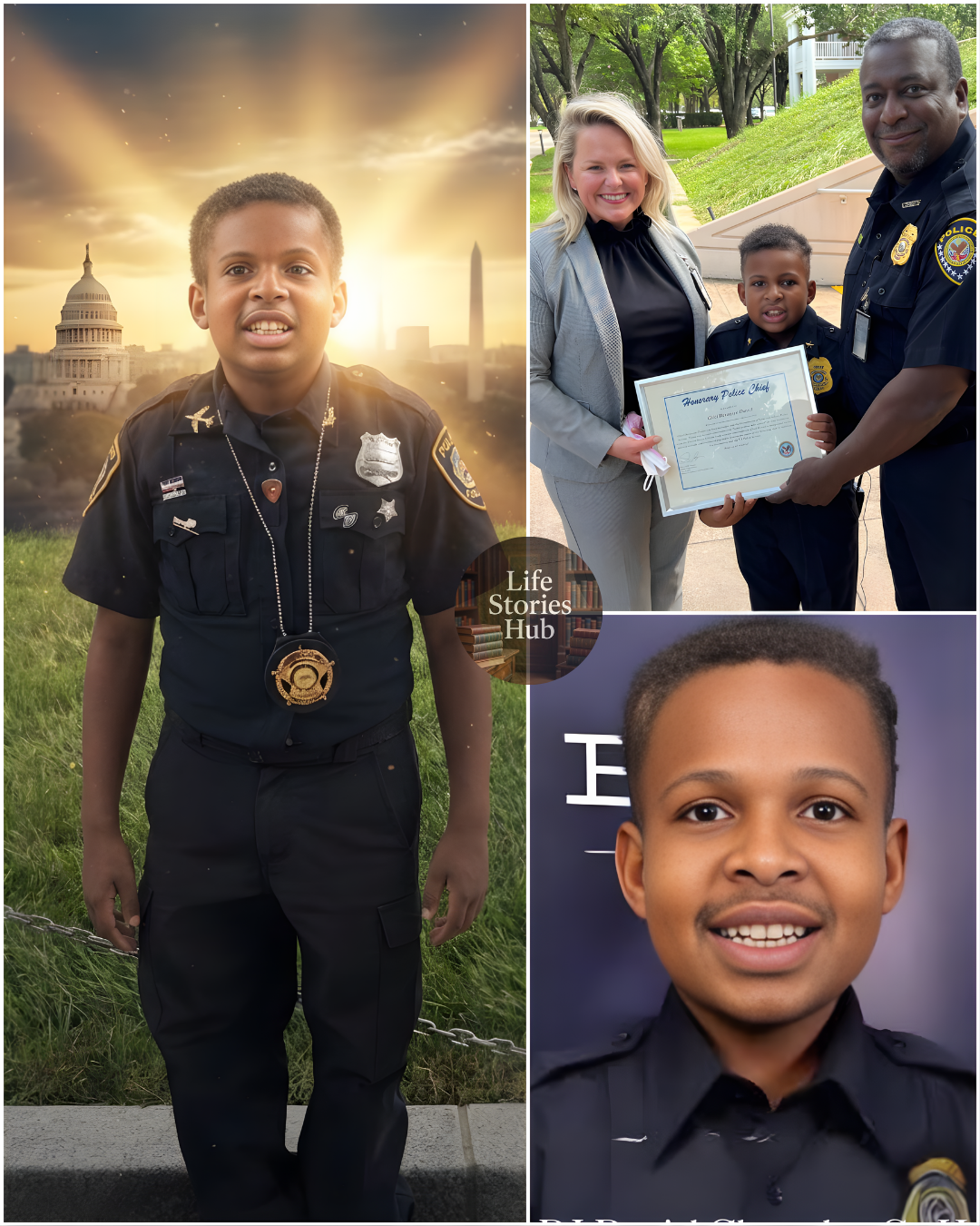 The nation first took notice when DJ was sworn in as an honorary chief of police at the Michael E. DeBakey VA Medical Center in Houston. The ceremony, intended as a gesture of encouragement, became something much bigger. Photos and videos of DJ—standing proudly in uniform, eyes bright with purpose—spread across social media. Veterans, officers, nurses, and strangers alike found themselves moved by a boy whose bravery felt contagious.