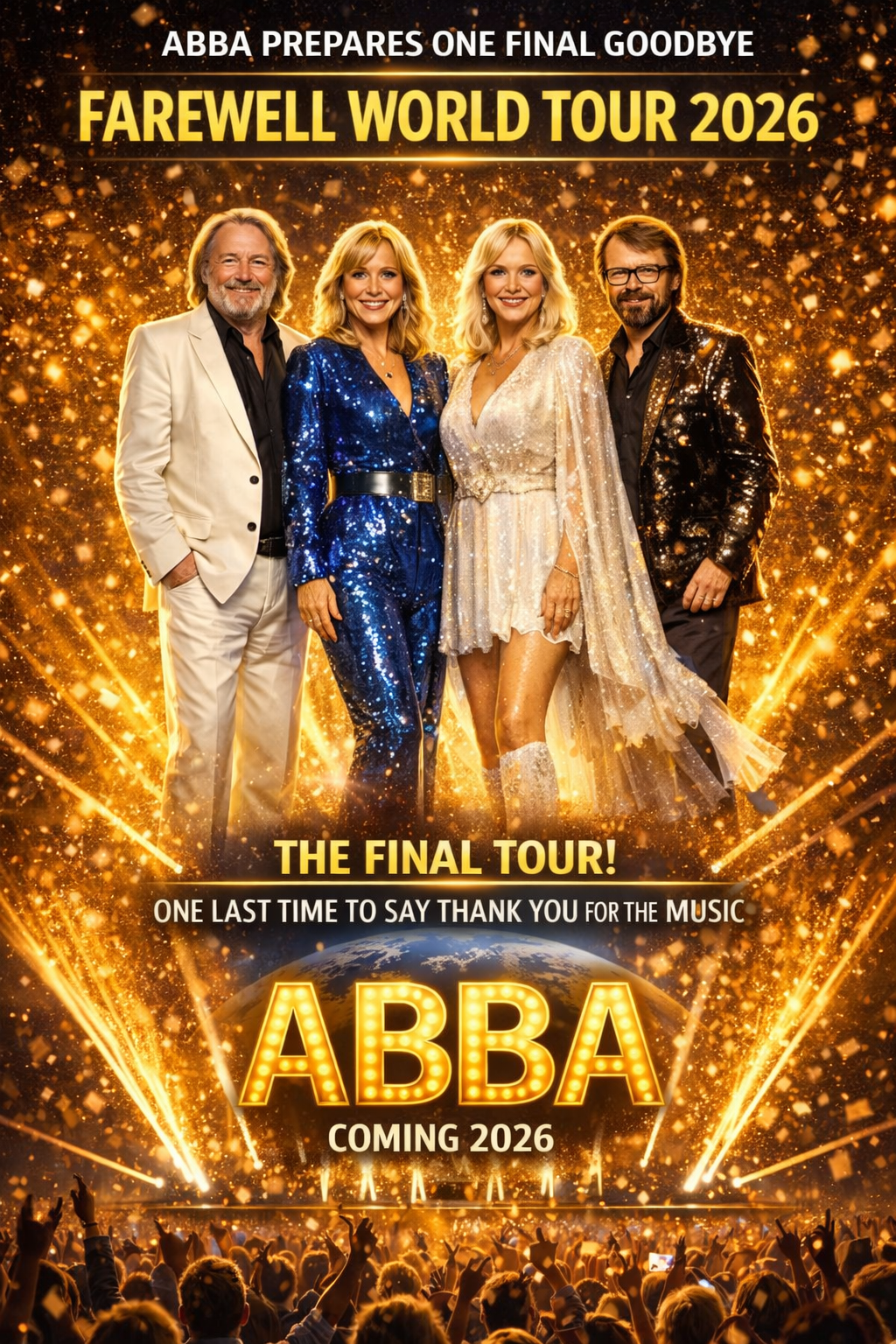 After more than fifty years of creating unforgettable music, dazzling performances, and cultural touchstones that span generations, ABBA is preparing to bid their final farewell. The iconic Swedish pop group, whose harmonies and hits have defined entire eras of popular music, has officially confirmed a global farewell tour set for 2026. For millions of fans around the world, this isn’t just another concert series — it is a historic closing chapter in the story of one of music’s most beloved acts.