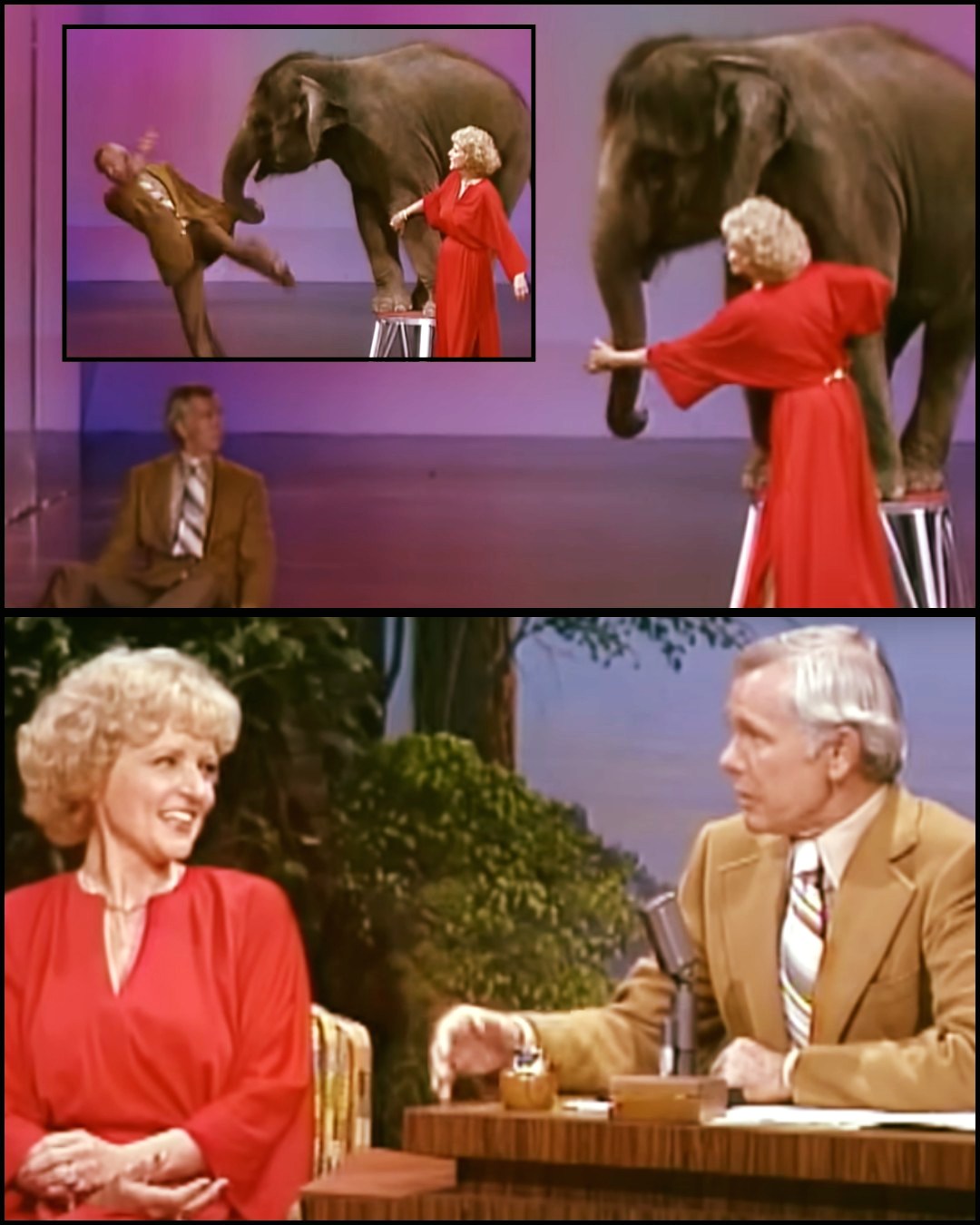 At first glance, the segment seemed harmless enough. Betty White, already beloved for her warmth, wit, and impeccable timing, introduced Dondi with the ease of someone welcoming an old friend. Carson, ever the professional, smiled politely—though one could sense a flicker of uncertainty behind his eyes. After all, it’s one thing to host Hollywood stars. It’s another to share the stage with a four-year-old elephant weighing hundreds of pounds.