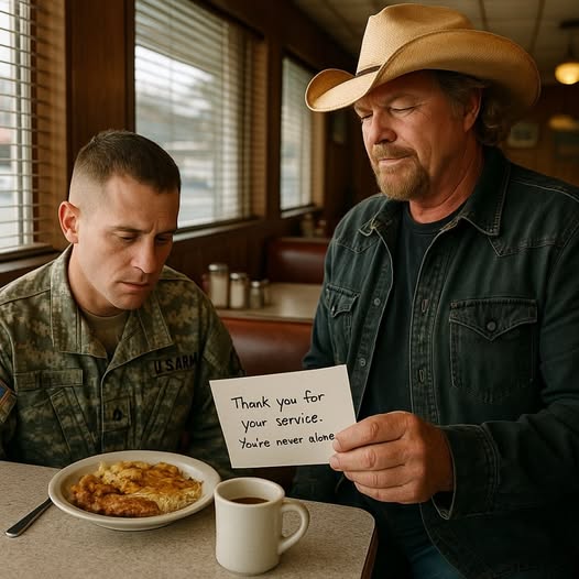 One moment in particular, far removed from the glare of stage lights and media cameras, perfectly encapsulates this hidden facet of his character. It was 2009, and in a small diner in Oklahoma, a young soldier, freshly returned from Afghanistan, was sitting alone. His uniform was worn, his eyes tired, heavy with the invisible weight of service. It was a quiet, ordinary moment, but Toby Keith happened to be there, too.