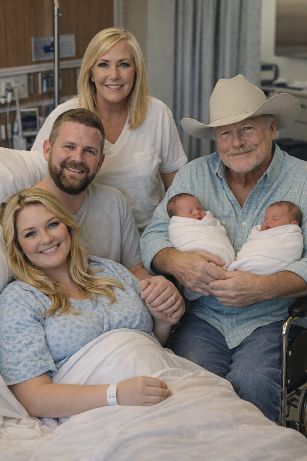 At the center of the announcement was a simple yet powerful image: Alan Jackson seated in a familiar rocking chair, gently holding two newborns in his arms. For decades, fans have known him as the voice of classic country — steady, grounded, and unwavering. But in this photo, there was something different.