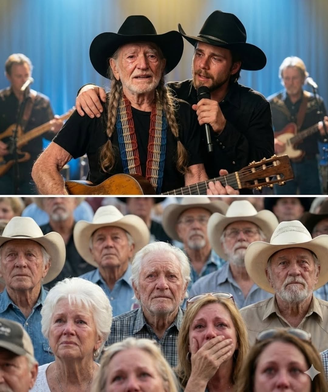 Witnesses inside the venue described the atmosphere as something almost sacred—an experience that left seasoned performers, longtime fans, and even country music royalty visibly moved. In a genre built on storytelling, heartache, and heritage, this quiet father-and-son performance reminded everyone present why country music exists in the first place.