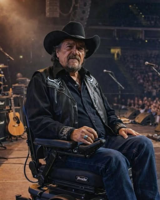 Waylon Jennings had spent a lifetime on his feet. From smoky honky-tonks to sold-out arenas, he stood firm behind the microphone, guitar slung low, shoulders squared in that unmistakable stance fans knew by heart. His body had always been part of the performance. The stillness. The grounded presence. The sense that he wasn’t just singing songs — he was standing inside them.