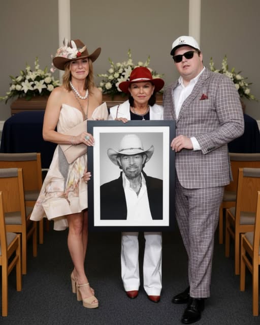 ToggleIn the quiet hush of a chapel filled with flowers and memories, a single sentence seemed to hold more weight than any award Toby Keith ever won. “He was ours before he was anyone else’s,” a family member said softly, their voice trembling but steady. In that moment, the world wasn’t remembering a chart-topping country superstar. They were remembering a husband, a father, a friend — a man whose laughter once filled a kitchen long before it echoed through sold-out arenas.