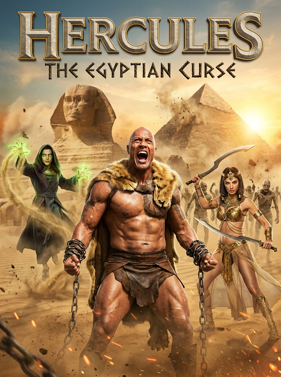 HERCULES 2: THE EGYPTIAN CURSE is blockbuster cinema in its most unrestrained, thunderous form—a film that knows exactly what it wants to be and charges toward that goal with godlike confidence. Bigger, louder, and more audacious than its predecessor, this sequel embraces excess as its greatest virtue. Dwayne Johnson doesn’t merely return as Hercules; he embodies him. This is not just a hero on screen, but a myth given flesh—an unstoppable force whose presence shapes the very logic of the film around raw power and demigod legend.