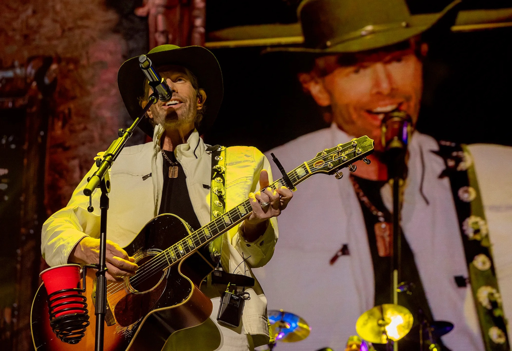 And when Toby Keith finally stepped into view, the reaction was immediate. The crowd rose to its feet before he even reached the microphone.