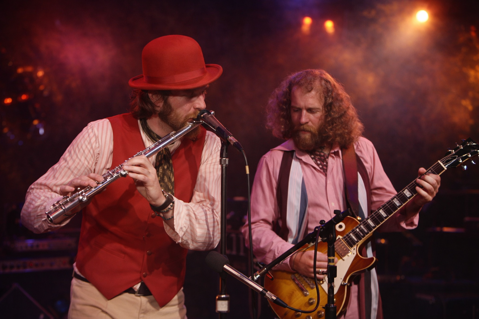At the forefront, Ian Anderson’s presence is magnetic yet understated. Unlike earlier shows, where his theatricality could dominate, here his movements and gestures feel purposeful, every flourish serving the music. His flute—sharp, assertive, and commanding—slices through the arrangement with surgical precision, guiding listeners through the song’s intricate rhythms. Anderson’s delivery here is a lesson in restraint: spectacle is secondary to substance, and every note matters.