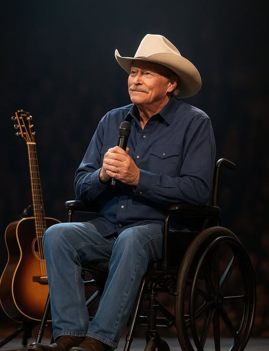 There are moments in country music when the applause fades, the lights dim, and something far deeper than entertainment fills the room. That’s exactly what happened when Alan Jackson stepped up to the microphone recently — not with his guitar in hand, not ready to sing a familiar chorus, but ready to speak from the heart.