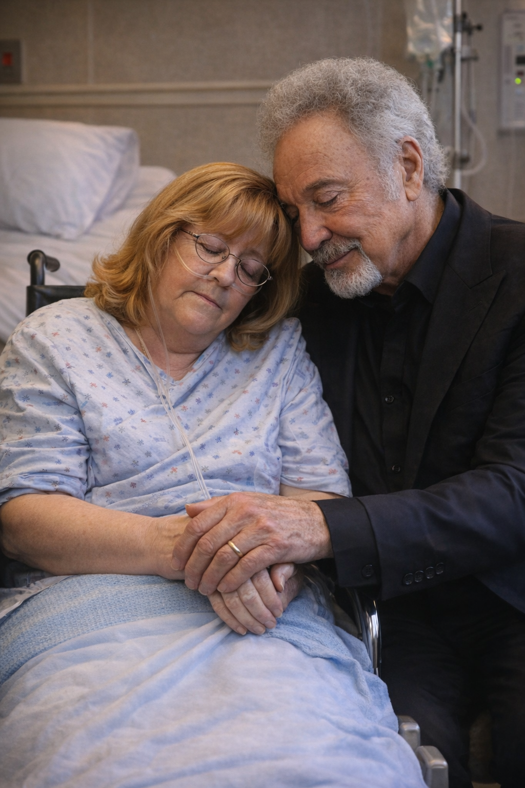 There are moments in life that define everything that comes after. For Tom Jones, a man whose voice has echoed across generations, that moment didn’t happen on a stage beneath dazzling lights or in front of thousands of screaming fans. It happened quietly, painfully, at a bedside — where love, memory, and farewell converged into a single fragile sentence.