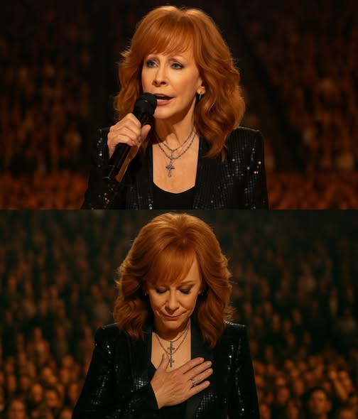 With those words, Reba McEntire stepped onto the stage, and the arena seemed to pause. Her voice cracked, the first aching chords spilling into the air like a confession too heavy to hold inside. There were no grand theatrics, no blinding lights, no triumphant pyrotechnics — only a woman standing before thousands, baring her heart with a rawness that few artists dare to reveal.