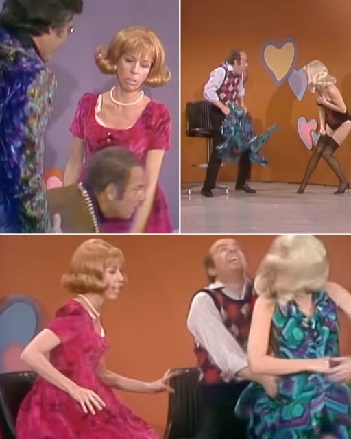 The final layer of brilliance comes in the subtle, human details that only live television can provide. As the character falls, Carol whispers something under her breath—a tiny, nervous aside—so quietly that viewers can barely catch it. Backstage, the crew is nearly shaking with laughter, causing curtains to ripple in the background. The chaotic energy of 1970s live TV, rarely captured in modern remakes, floods through the screen, reminding audiences that comedy, at its core, is a shared, communal experience.