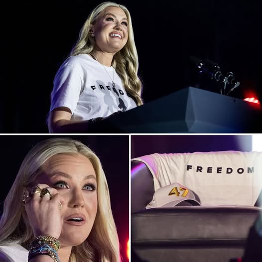 When Erika Kirk stepped onto the Turning Point USA stage wearing her late husband Charlie’s familiar “FREEDOM” T-shirt, the energy in the arena shifted instantly. Thousands of voices faded into stillness. Conversations stopped mid-sentence. Even the restless shuffle of a crowded event seemed to disappear. In that moment, it became clear that this would not be just another appearance. It would be something far more human.