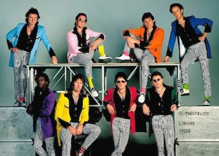 Formed in 1973 through the merging of two local Leicester bands, Showaddywaddy quickly distinguished themselves from the crowd. With eight members, dual drummers, choreographed stage moves, and unmistakable Teddy Boy flair, they were as much a visual spectacle as a musical act.
