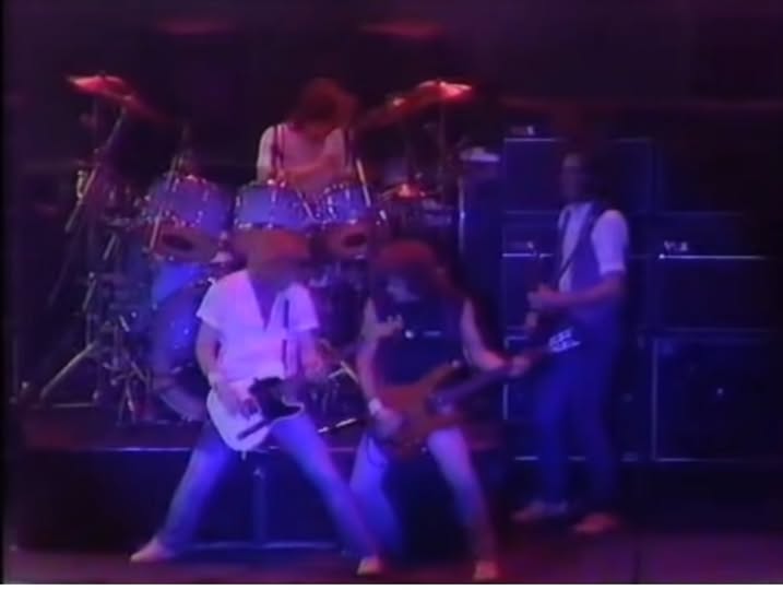 The performance was professionally recorded and later released as the live album Live at the N.E.C., now regarded by fans as a snapshot of Quo at peak touring power. Placed late in the set, “Bye Bye Johnny” worked as a victory lap—an explosive closer that wrung every last drop of energy from the crowd. By that point, the room had already been primed by a parade of crowd-pleasers and road-tested anthems. The choice to unleash this rock-and-roll sprint so late in the show wasn’t accidental; it was a strategic release of pressure after a marathon of riff-driven momentum.