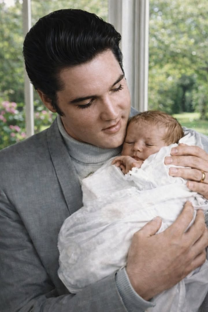 Cradled carefully in his arms was his newborn daughter, Lisa Marie Presley.