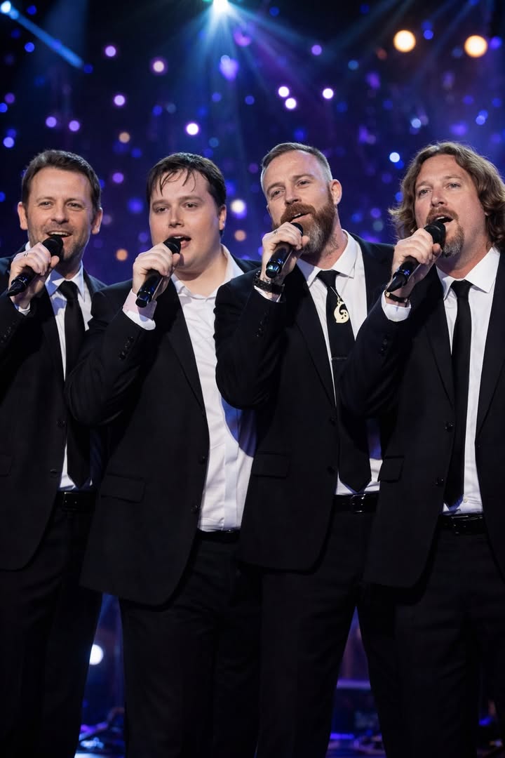 Stepping into the spotlight together were Steve Gibb, Ashley Gibb, Adam Gibb, and Robin John Gibb — four children, four voices, united by an inheritance that stretches far beyond charts and accolades. In their hands, the Bee Gees’ music became a living, breathing entity once more. The atmosphere in the room shifted quietly but palpably the moment they lifted their voices. This was not a performance designed to impress. It was a devotional act — a preservation of something sacred.