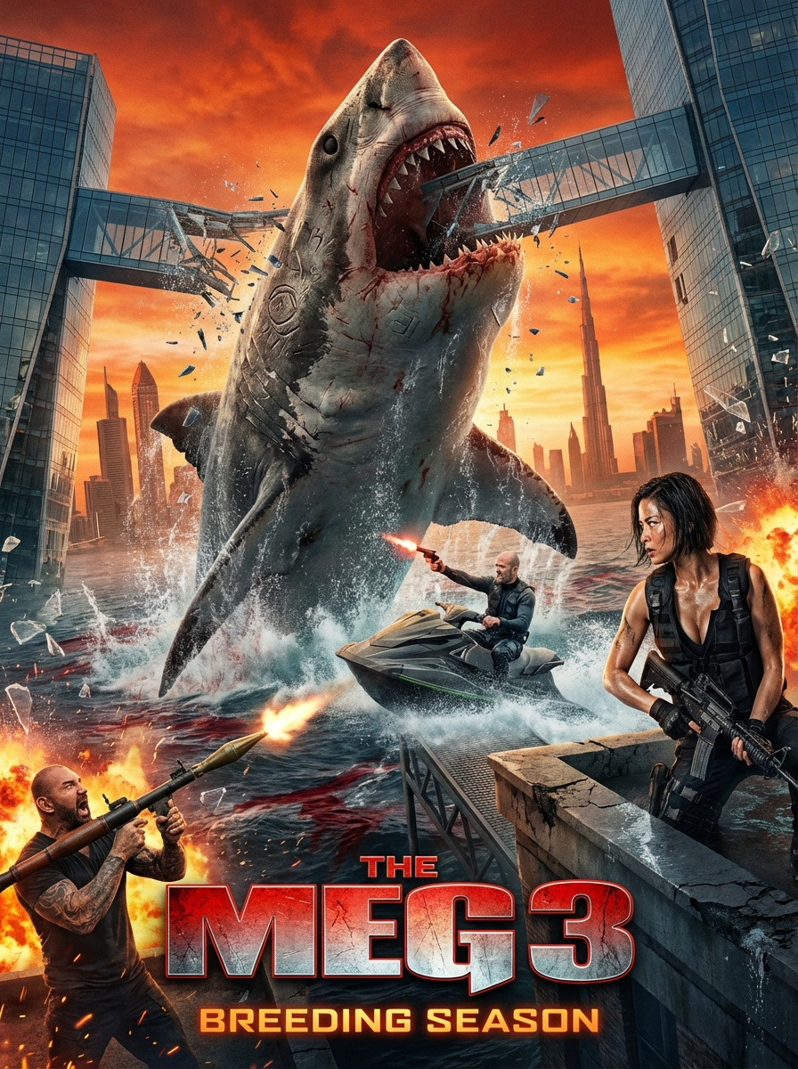 The Meg 3: Breeding Season doesn’t just abandon realism—it straps it to a rocket, fires it into the sun, and then feeds what’s left to a family of genetically furious Megalodons. This third entry in the franchise understands exactly what it is: not a thriller, not a survival drama, and certainly not a scientific exploration of deep-sea life. It is, instead, a full-throttle, unapologetic celebration of excess. Bigger sharks. Bigger explosions. Bigger cities to destroy. Bigger grins on the faces of viewers who came to watch absurd aquatic chaos and got exactly what they paid for.