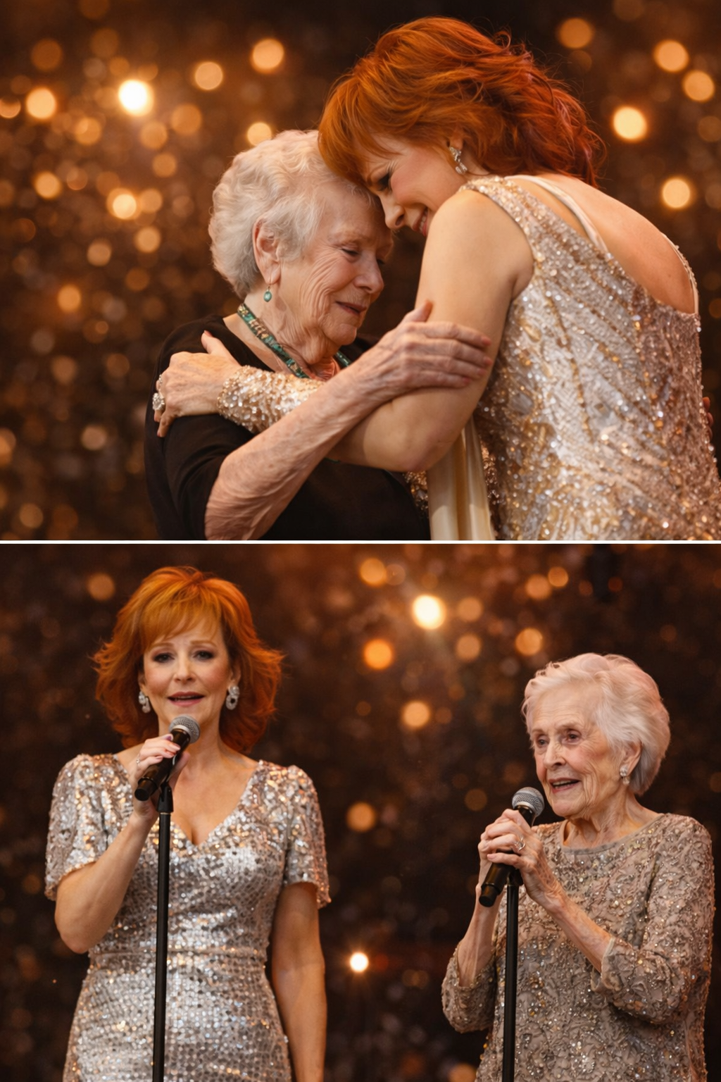 As the audience watched in complete silence, Reba helped the woman to her feet and guided her onto the stage. No spotlight effects, no dramatic music—just two people, hand in hand, walking into a moment that felt deeply personal and profoundly real.