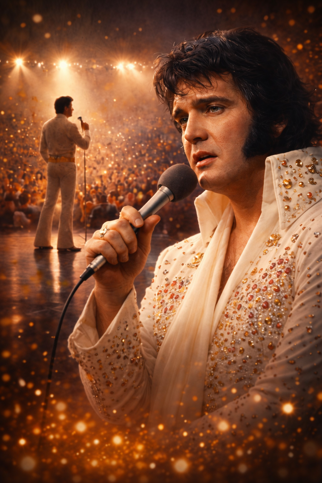 INFINITE MOMENTS: Elvis Presley’s Last Glow captures that delicate, almost unbearable truth. It isn’t about spectacle or shock. It’s about presence. About a man who stood beneath the weight of expectation, memory, and physical exhaustion—and still chose to perform.