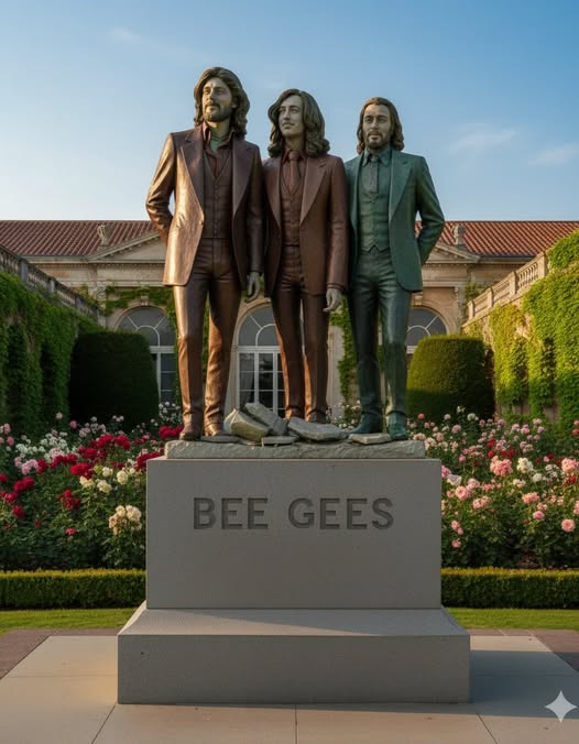 The monument, erected just weeks ago, had already become hallowed ground for Bee Gees admirers from every corner of the globe. Positioned in a location carefully chosen for its serenity and accessibility, the statue captured the essence of Barry, Robin, and Maurice Gibb—brothers whose voices defined an era and whose songwriting shaped the soundtrack of countless lives.