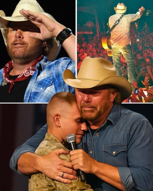 During the concert, Toby invited a young soldier onto the stage. The man had lost both of his legs in combat. There were no dramatic introductions, no long speeches, no spotlight theatrics. Just a quiet moment between two men who understood the meaning of sacrifice. As the opening chords of “American Soldier” began to echo through the arena, Toby placed a hand on the soldier’s shoulder—not as a superstar entertainer, but as one American honoring another.