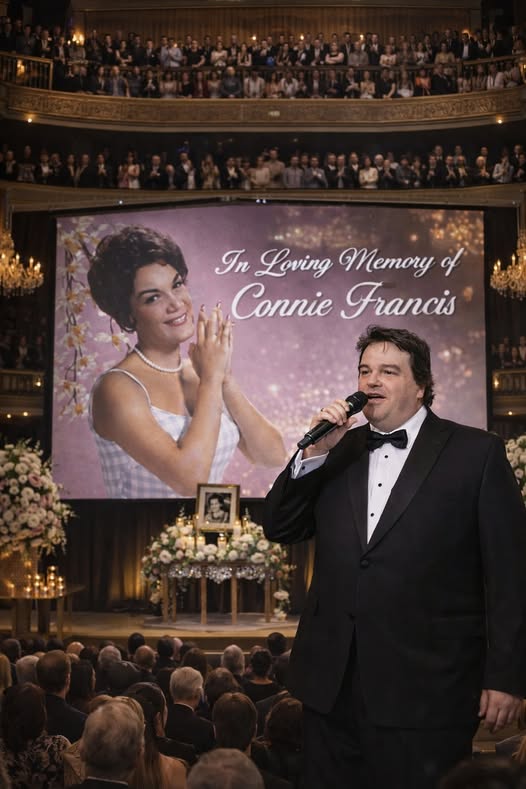 The lights inside the memorial hall were soft, almost hesitant, as though even the room itself understood the weight of the moment. Thousands had gathered to honor the life and legacy of legendary singer Connie Francis, a voice that once filled radios, concert halls, and hearts across generations. But what unfolded that evening was not simply a tribute to a star.