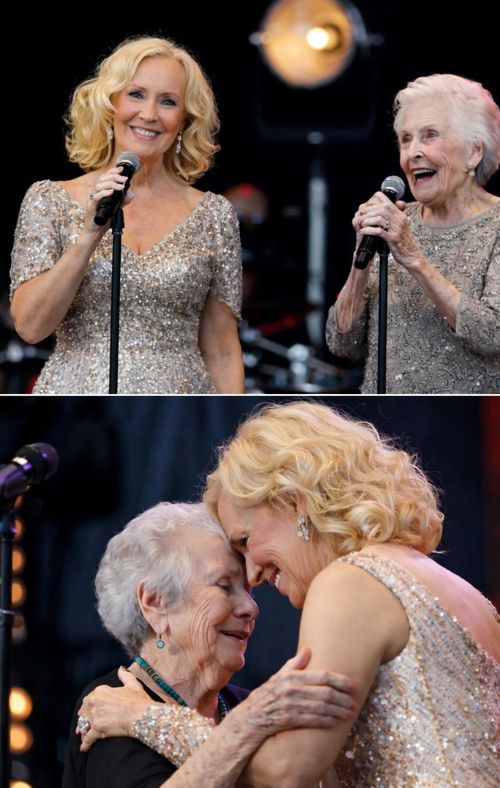 The image of Agnetha kneeling beside the woman quickly spread across social media the next day, with many fans describing it as one of the most touching moments they had ever witnessed at a concert.