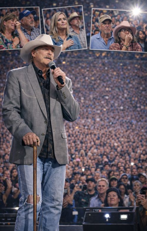 That was the feeling hanging in the air on a night many fans now describe as unforgettable. When **Alan Jackson stepped slowly into the spotlight—leaning gently on a cane—the room seemed to shift. Conversations stopped. Applause softened into something quieter. For a moment, country music wasn’t about the performance at all. It was about presence.