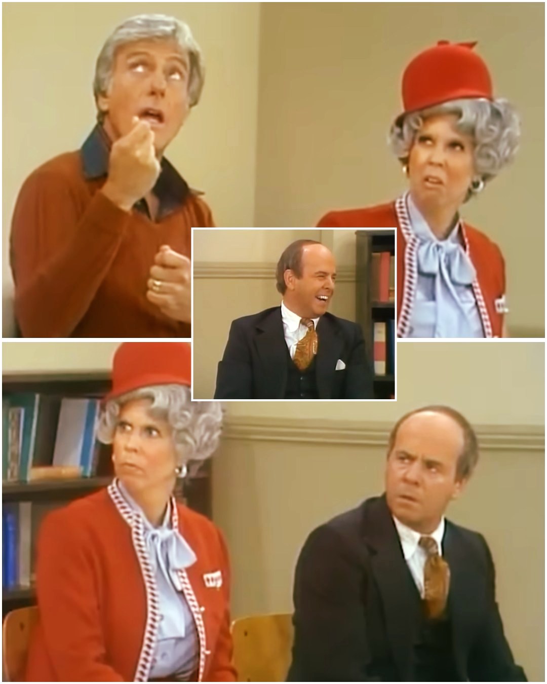 Tim Conway enters first, and immediately the room’s equilibrium collapses. He strains against an unseen force, leaning back with all his might, as if his dog weighs more than he does. The leash jerks violently. His body follows. The audience erupts.