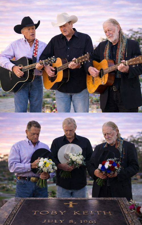 Country music has never needed fireworks to make history. Its most meaningful moments are often the quietest ones — the kind that unfold away from television cameras, red carpets, and roaring crowds. That truth lies at the heart of a story that has quietly moved fans across generations: the night three country legends — George Strait, Alan Jackson, and Willie Nelson — came together not to perform, but simply to remember their friend, Toby Keith.