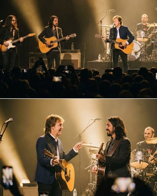 It was “While My Guitar Gently Weeps” that filled the room that night—not as a hit or a spectacle, but as a vessel for memory. Paul McCartney and Ringo Starr, two men whose names have become synonymous with legend, did not step into the light as icons. They stood as brothers—brothers who had walked decades together, carrying laughter, loss, and a history too intricate for words. Their presence was simple, unadorned, and in its simplicity lay its power.