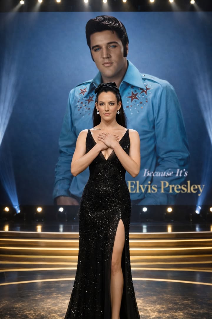 As Elvis’s performance intensified on screen, Riley’s gaze reportedly drifted inward. The applause echoing through the speakers, the gospel-tinged power of his voice, the sheer magnetism of his stage presence — all of it seemed to pull her into a deeply personal reflection.