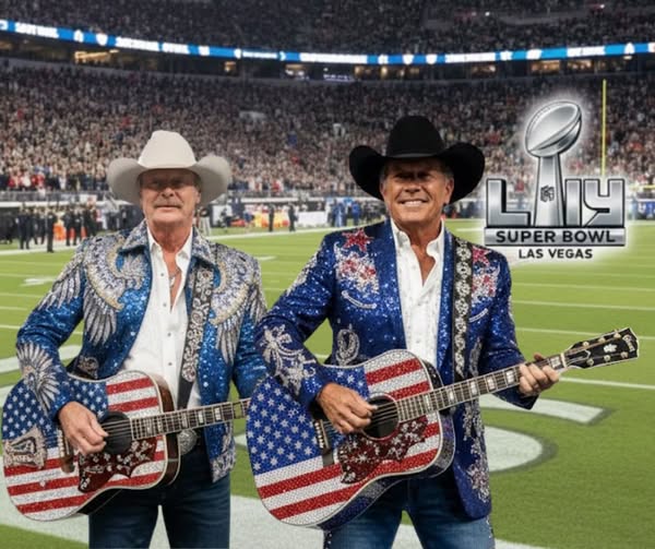 There are moments in music that defy expectation, that cut through the noise and demand something deeper than applause. The Super Bowl, an event synonymous with spectacle, glitter, and relentless energy, became the unlikely setting for one of these rare moments. On this night, the stadium lights blazed, millions of eyes were glued to screens, and the air was thick with anticipation. And then, as George Strait and Alan Jackson stepped onto the stage, the unexpected happened: America stopped clapping. And, more importantly, America listened.
